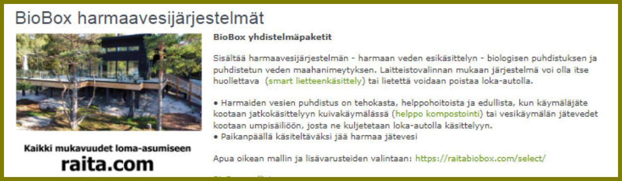 BioBox laitteisto “räätälöidään” kohteeseen. Valikoimassa on lukuisia toteutus-
